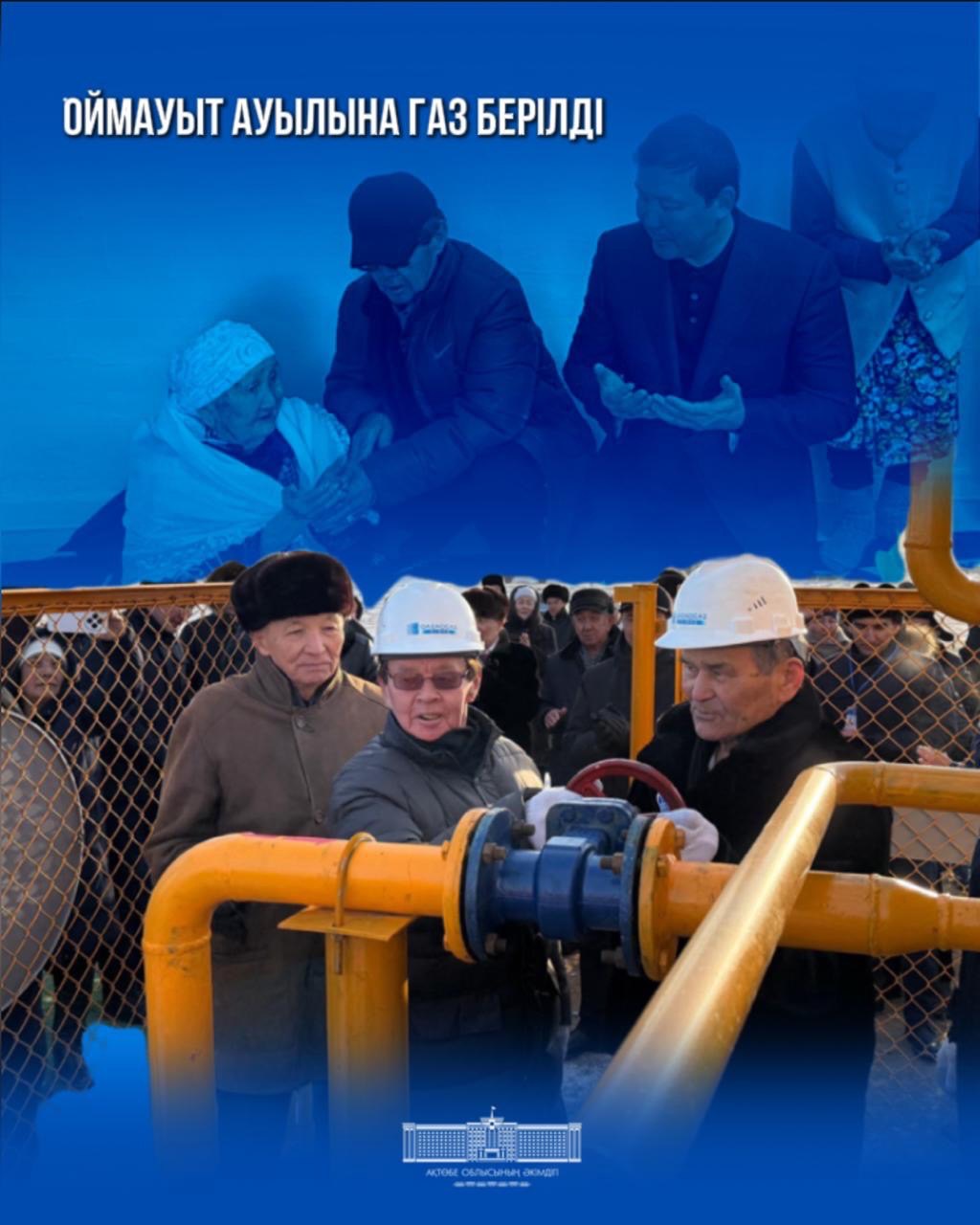 Газ беру салтанатынан кейін облыс әкімі алғашқылардың бірі болып көгілдір отын қосылған Оймауыт ауылының 105 жастағы тұрғыны Тұраш Құдайқұлованың шаңырағына барды. Өңір басшысы ғасыр жасаған кейуанаға Тәуелсіздік күнімен және ауыл үшін маңызды оқиғамен құттықтап, әңгімелесті.