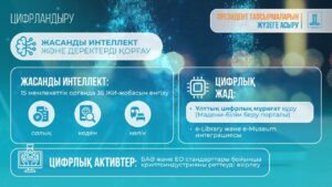 ●          Ұлттық цифрлық мұрағат құру жөніндегі жол картасы бекітілді. Жоба үшін гибридті тәсіл таңдалды: сақтау – отандық деректер орталығында, аналитика – бұлтты сервистер арқылы жүргізіледі. Жұмыс тобы отырысының қорытындысы бойынша жобаны бірыңғай мәдени-білім беру порталына кеңейту туралы шешім қабылданды. «Е-кітапхана», «е-Мұрағат», e-culture және e-museum жүйелерімен интеграция жүргізілуде.