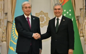 АШХАБАД. KAZINFORM — Халықаралық бейбітшілік және сенім жылына арналған форумға қатысу үшін Ашхабад қаласына келген Мемлекет басшысы Қасым-Жомарт Тоқаевты Түрікменстан Халк Маслахатының Төрағасы Гурбангулы Бердімұхамедов қарсы алды. Бұл туралы Ақорда мәлім етті.